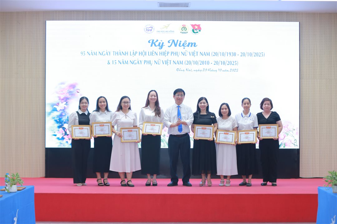 Hòa trong không khí cả nước chào mừng 95 năm Ngày thành lập Hội Liên hiệp Phụ nữ Việt Nam (20/10/1930 – 20/10/2025) và 15 năm Ngày Phụ nữ Việt Nam (20/10/2010 – 20/10/2025), sáng ngày 20/10/2025, tại Hội trường A301 – Cơ sở 1, Công đoàn Trường Đại học Lạc Hồng phối hợp cùng Chi hội Nữ tri thức và Đoàn Thanh niên đã tổ chức chương trình kỷ niệm đầy ý nghĩa nhằm tri ân, tôn vinh vai trò của phụ nữ trong xã hội hiện đại.
