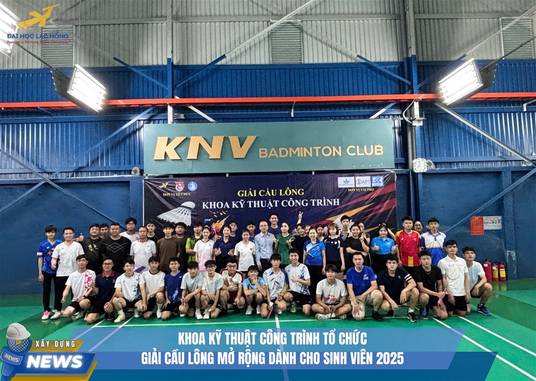 Nhằm tạo sân chơi thể thao lành mạnh, nâng cao sức khỏe và tăng cường sự đoàn kết giữa sinh viên các khóa, Khoa Kỹ thuật Công trình – Trường Đại học Lạc Hồng tổ chức Giải Cầu lông Sinh viên 2025 với quy mô mở rộng cho toàn thể sinh viên đang học tập tại Khoa. Đây là một trong những hoạt động trọng điểm thể hiện sự quan tâm của Khoa đến đời sống tinh thần và sức khỏe của sinh viên thông qua phong trào thể thao ngoại khóa.