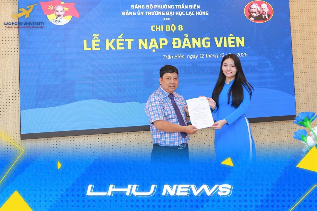 Phát biểu tại buổi lễ, đồng chí Lê Sơn Quang chúc mừng đảng viên mới, đồng thời mong muốn đồng chí tiếp tục phát huy tinh thần tiên phong, gương mẫu, không ngừng học tập, rèn luyện, cống hiến cho sự phát triển của Trường Đại học Lạc Hồng.