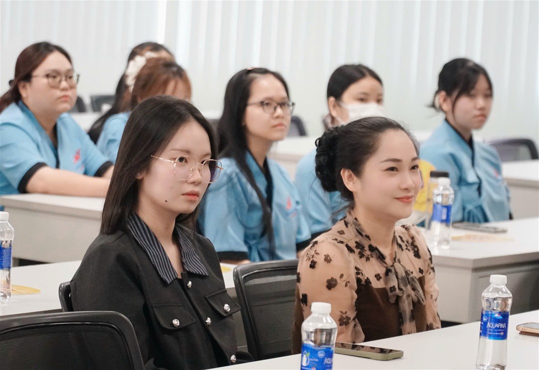 Sau phần trao đổi, sinh viên được tham quan nhà máy sản xuất, tìm hiểu sơ lược về quy trình sản xuất hiện đại, tác phong làm việc công nghiệp và các tiêu chuẩn an toàn – chất lượng trong doanh nghiệp FDI, đồng thời có những trải nghiệm thực tế vô cùng bổ ích.