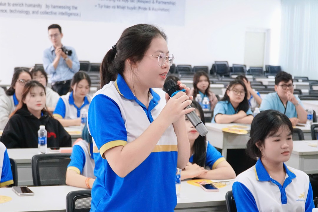 Bên cạnh đó, các bạn sinh viên đã mạnh dạn đặt câu hỏi và được giải đáp trực tiếp về chế độ lao động, tiền lương, phúc lợi, cơ hội thăng tiến, cũng như những yêu cầu cần thiết khi ứng tuyển và làm việc tại doanh nghiệp Hàn Quốc.