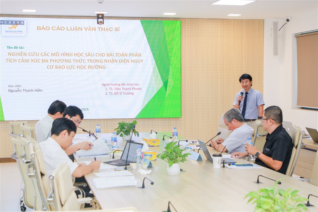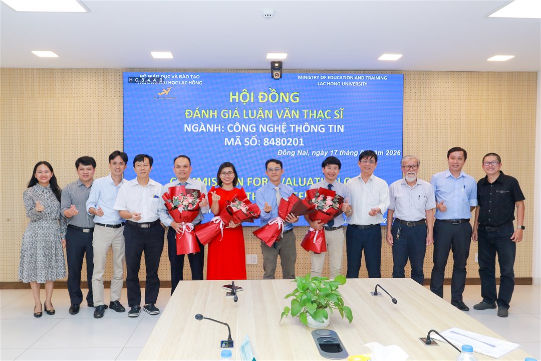 Ngày 17 tháng 01 năm 2026, tại phòng họp cơ sở 1 của Trường Đại học Lạc Hồng (LHU), 04 học viên ngành Công nghệ thông tin đã xuất sắc bảo vệ thành công luận văn thạc sĩ của mình. Buổi bảo vệ diễn ra trong không khí trang trọng và đầy tính học thuật, đánh dấu một bước ngoặt quan trọng trong hành trình học tập và nghiên cứu của các học viên.