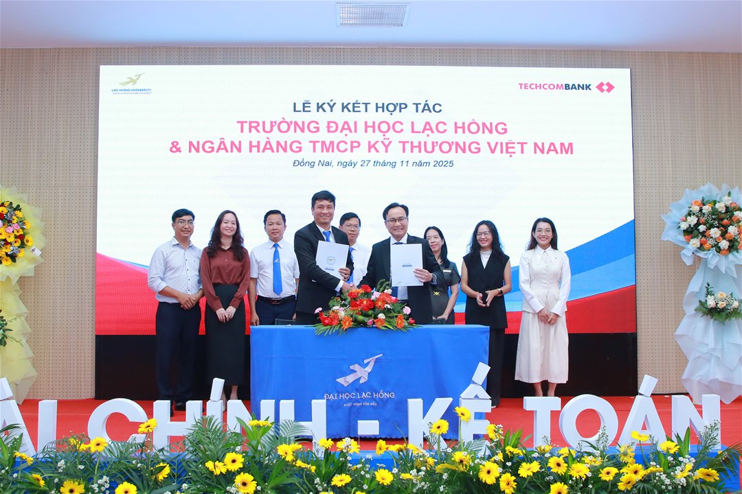 On the afternoon of November 27, 2025, at Room A301, Lac Hong University, the Faculty of Finance – Accounting solemnly held the signing ceremony of a Memorandum of Understanding (MOU) with Vietnam Technological and Commercial Joint Stock Bank (Techcombank). This event marks a significant milestone in strengthening university–industry collaboration, aiming to enhance training quality and expand career opportunities for students majoring in Finance and Banking.