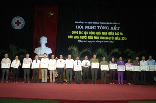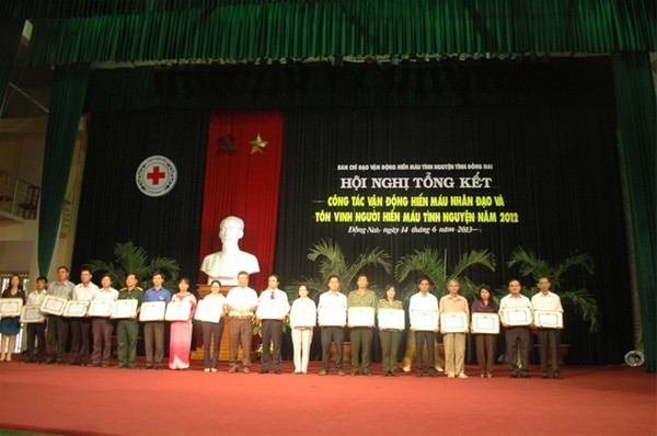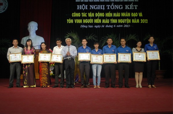 In the morning of  June 14, Dong Nai province’s Steering Committee of Voluntary Blood Donation solemnly held a ceremony to honor individuals and collectives for their blood donation efforts 2012. Rector of the University Dr. Diep Cam Thu attended the ceremony together with individuals and collectives who actively participated in humanitarian blood donation programs 2012.
