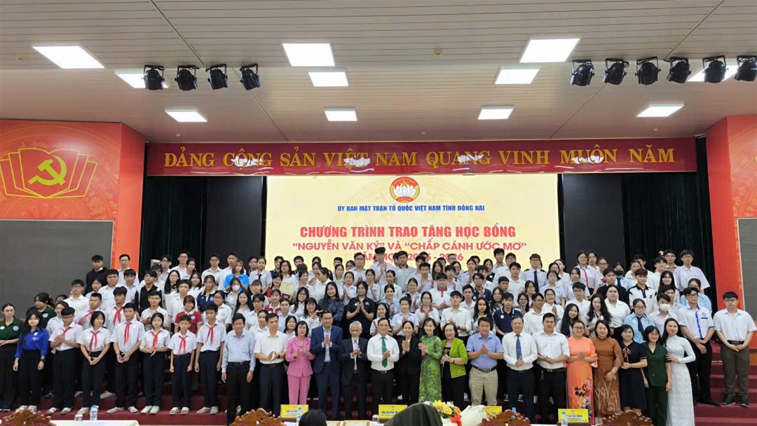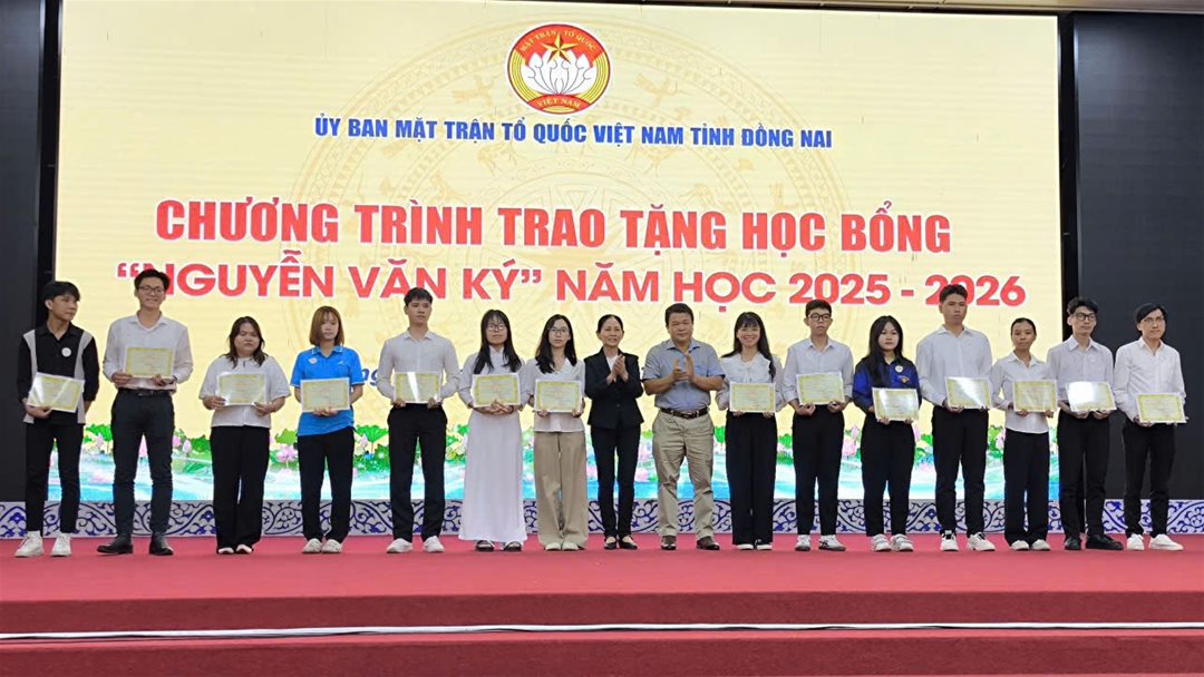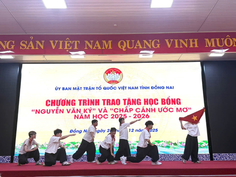 Sáng ngày 28/12/2025, tại Hội trường Đảng ủy phường Trấn Biên, Ban Thường trực Ủy ban Mặt trận Tổ quốc Việt Nam tỉnh Đồng Nai phối hợp nhà tài trợ tổ chức chương trình trao tặng học bổng “Nguyễn Văn Ký” và “Chắp cánh ước mơ” năm học 2025-2026 cho 150 em học sinh, sinh viên thuộc hộ nghèo, hộ có hoàn cảnh khó khăn và các em là con, cháu, chắt trực hệ của Bà mẹ Việt Nam anh hùng, liệt sĩ vượt khó học giỏi.
