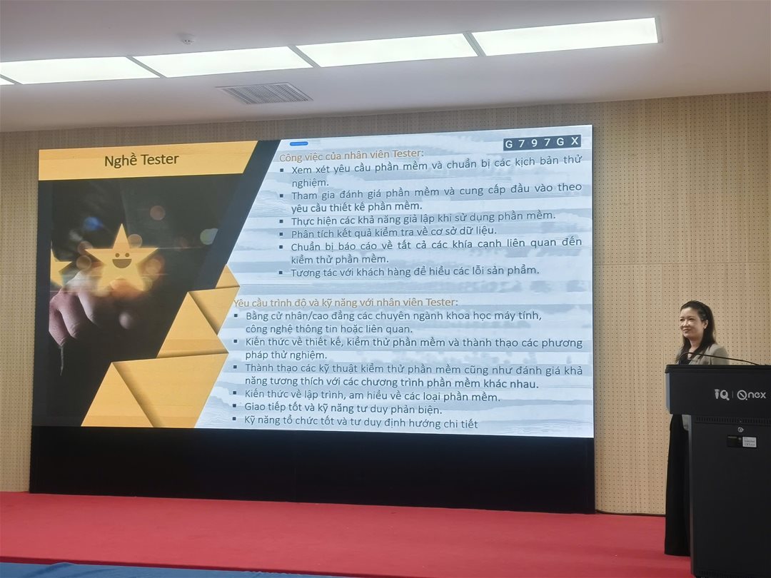 During the seminar, Ms. Nguyen Thi Hong Van shared valuable insights regarding the UAT (User Acceptance Testing) process – a critical stage in software testing that ensures the product meets user requirements before being put into operation.