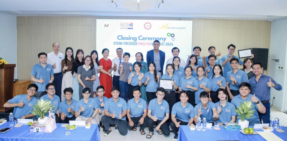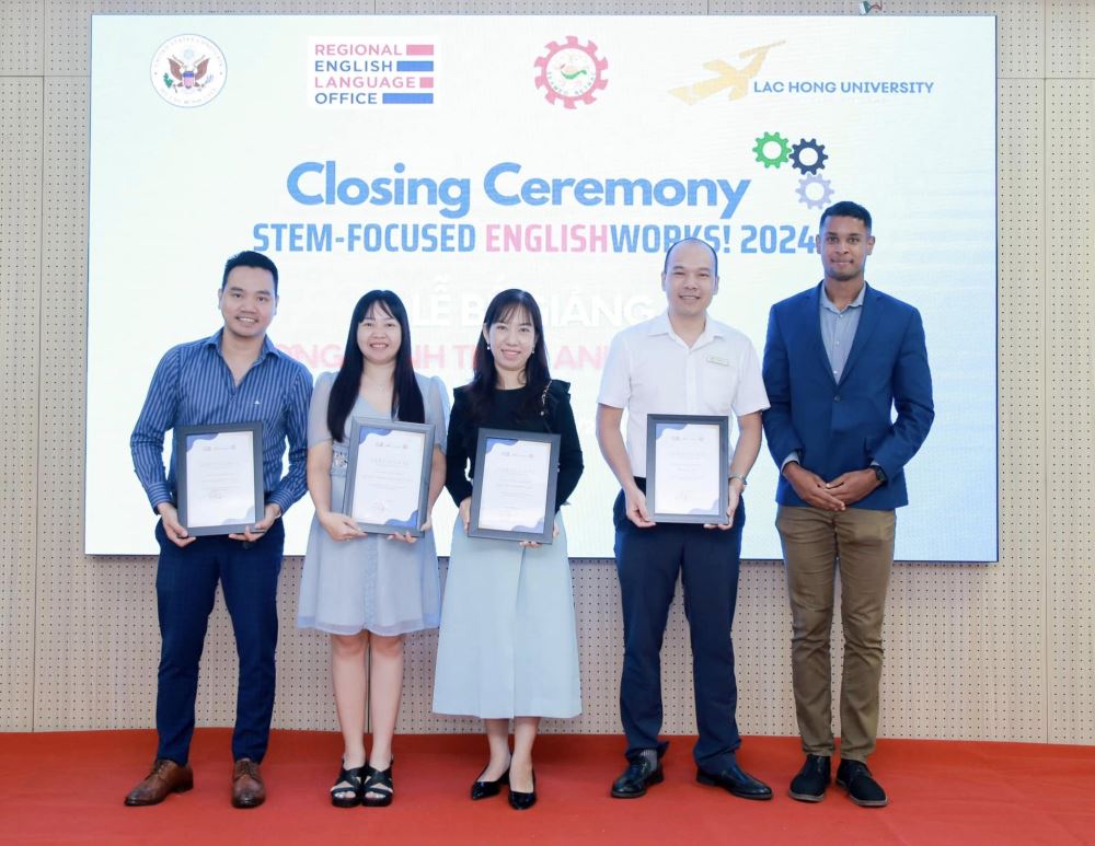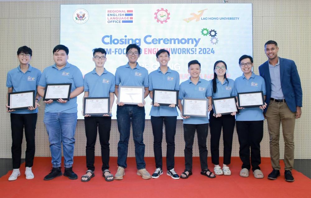On the morning of November 14, 2024, Lạc Hồng University held the Closing Ceremony for the EnglishWorks! 2024 program. This event marked the completion of a meaningful six-month academic journey, fully sponsored by the Regional English Language Office (RELO), the U.S. Consulate General in Ho Chi Minh City, and the SEAMEO Regional Training Center (RETRAC) in Vietnam.